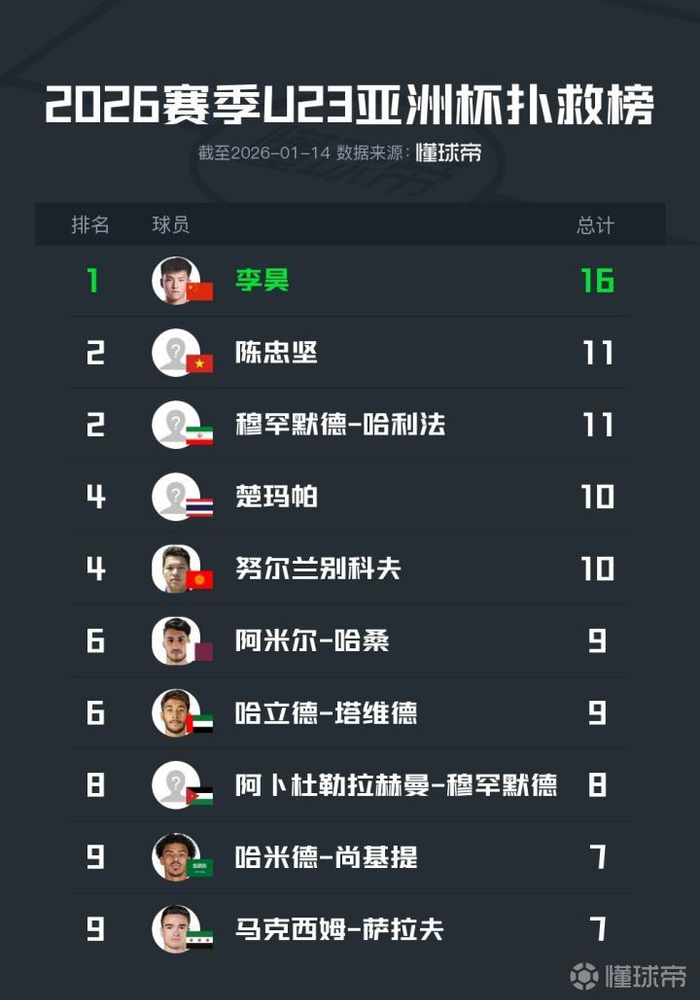 在本届赛事扑救数据上,李昊在扑救榜上以16次大幅领先,且0失球。中国U23也和日本U23成为了本届赛事唯二小组赛阶段未丢球的球队。