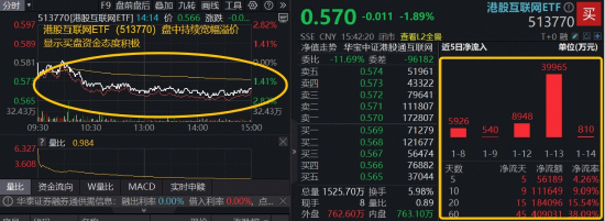 港股AI核心资产——港股互联网ETF(513770)场内价格一度跌逾2%,收跌1.89%,盘中持续宽幅溢价,显示买盘资金态度强势,逢跌积极抢筹。上交所数据显示,港股互联网ETF(513770)近10日有9日获资金增仓,合计获资金净流入11.16亿元。